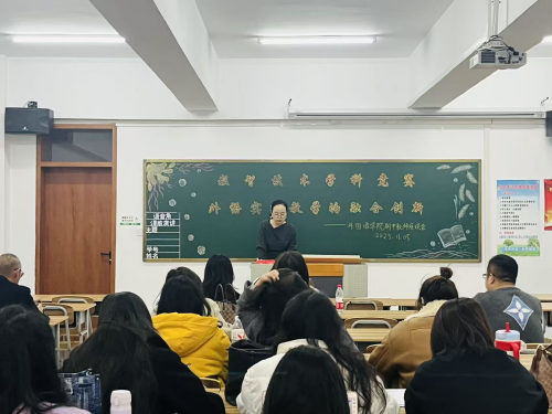 2025年11月5日下午15:00,外国语学院在综合楼1218教室召开了以“数智技术+学科竞赛:外语实践教学的融合创新”为主题的期中座谈会。会议由金锦姬老师主持,学院院长及全体专职教师共同参与,围绕数智技术在外语教学与学科竞赛中的应用展开深入交流,教务处领导莅临指导。