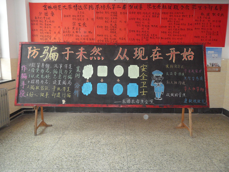 在案件发生后,我系迅速召开紧急会议,对在校的所有学生尤其是刚刚进入大学校园的大一的学生展开防骗教育。认真落实“预防为主、单位负责、突出重点、保障安全”的工作方针,扎实开展好防骗防盗安全知识专题宣传教育活动,突出“加强自我防范意识、提高防盗防骗能力”的主题,通过板报宣传教育,使全系师生牢固树立“安全第一”的思想,增强自我防护意识,培养自我防护能力,切实遏制和杜绝校园内诈骗、盗窃案件的发生,确保学校和师生的财产安全。我系根据实际,围绕活动主题,各班制定切实可行的活动方案,加大防骗防盗宣传教育力度,提高防骗防盗宣传教育效果,建立防骗防盗宣传教育的长效机制,切实遏制和杜绝校园内诈骗和盗窃案件的发生,加强了校园治安管理,有利于校园和谐文化的建设。