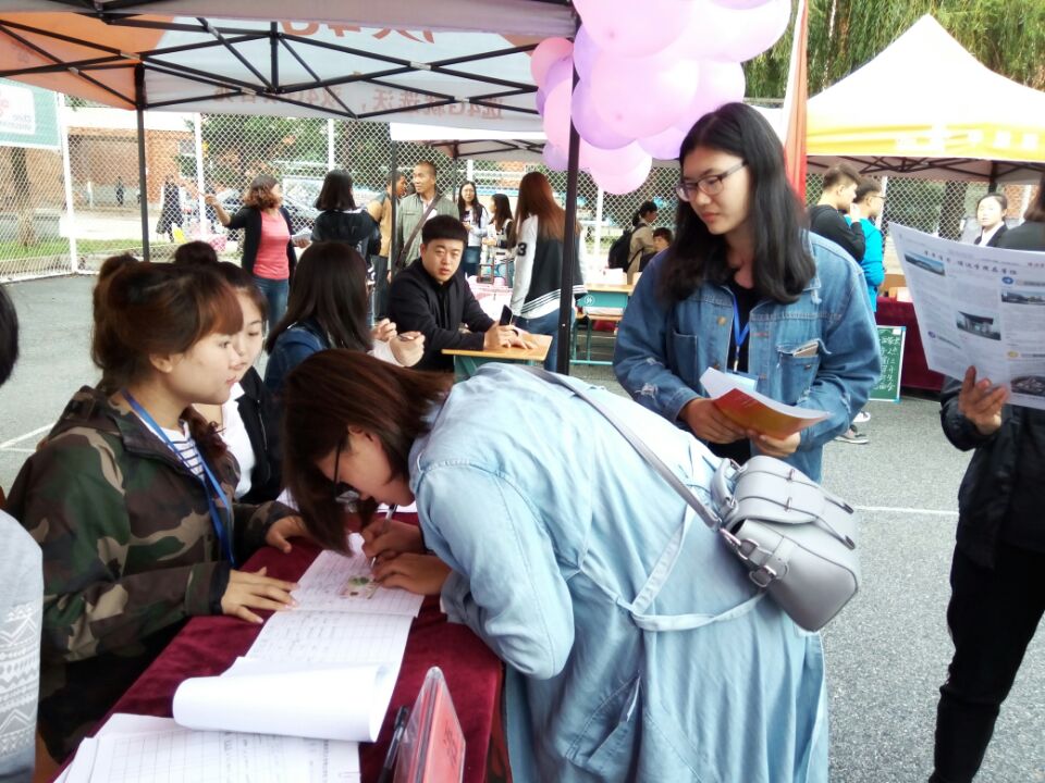 我系志愿者时时做到热情待人、认真接物,引领新生办理入学手续并引导新生去宿管处办理入住登记,报到高效迅速,节省了学生、家长的时间。
