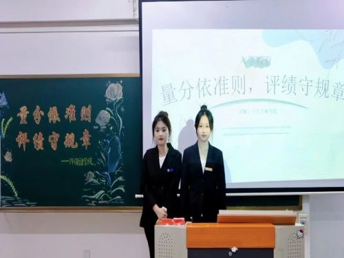 本次外国语学院秘书处开展的“量分依准则,评绩守规章”2025级新生主题宣讲活动,不仅系统阐释了量化考核与奖学金评定的细则规范,更寄托着外国语学院对2025级全体新生的期望,能以规章为舟,以量化为帆,在大学生涯中锚定成长方向、明晰发展路径。逐步适应大学的生活节奏,开启充实有意义的学习。