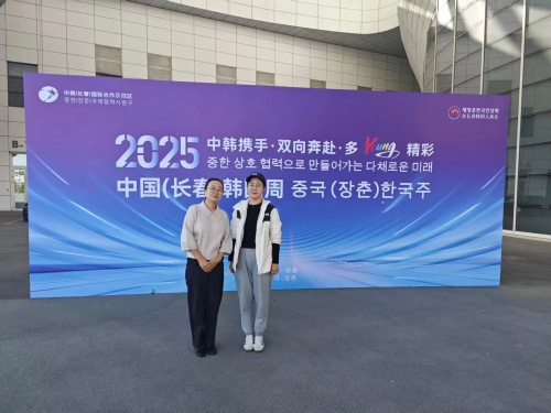 融通中韩,聚力前行。为增进学生对于朝鲜语在商务谈判、文件翻译及跨文化沟通等实际场景中的理解,进一步提升语言综合运用能力,9月20日上午,外国语学院朝鲜语专业负责人金锦姬,专业老师李俐带领同学们共同参与了在中韩国际合作示范区中韩城市馆举办的“2025中国韩国周”开幕式活动。本次活动以深化中韩人文交流与经贸合作为主题,为长春市民呈现了一场沉浸式的韩风文化盛宴。