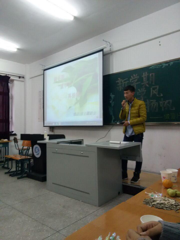 为了响应学风建设月的号召,2015年10月 26日下午4:00,东语系14级俄语专业举办了一场“新学期·重学风·再扬帆”主体班会。东语系学工办主任崔婷婷老师、专职教师马建老师、外教伊琳娜老师以及部分高年级学生应邀参加班会。