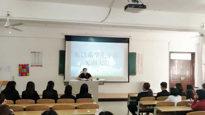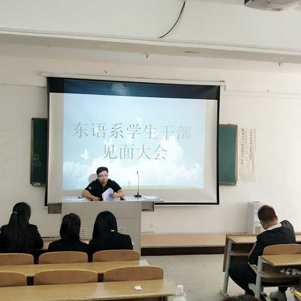 为了扎实推进我系学生自主管理工作,充分发挥团学联学生干部的管理作用,维护和保障良好的教育教学秩序,有序有效的落实新学期各项工作任务。 2017年8月30日,东语系在三教二楼3220举办“学生干部见面大会”,辅导员张艺严老师主持了本次会议,团学联全体学生干部出席了本次会议。