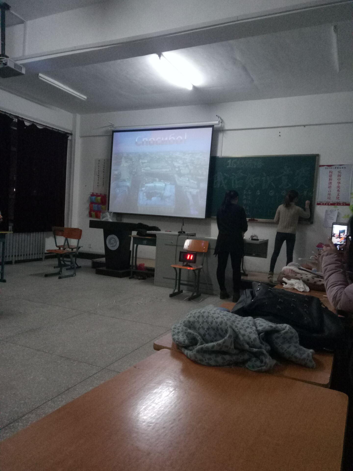 12月14日下午6点,东语系于3214教室举办16级俄语知识竞赛。邀请到俄语专业陈宇老师和夏俊杰老师担任此次比赛评委。