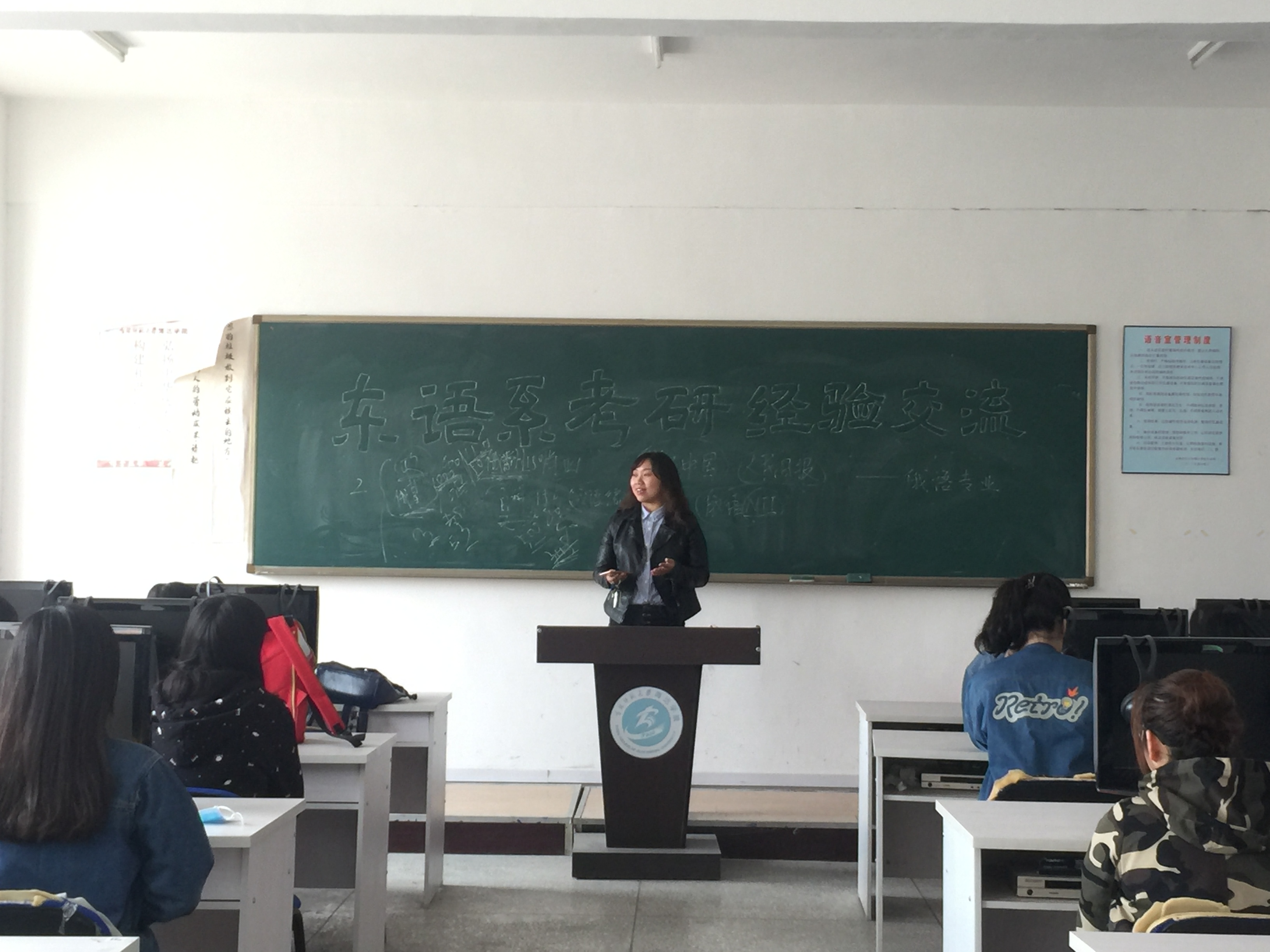 首先,东语系辅导员崔婷婷老师对13级考研学生取得的优异成绩给予了高度肯定和深深祝贺,接着深入分析了当下的考研形势,并指出此种形式对14级考研学生的有利之处,鼓励同学们积极考研,努力拼搏,奋斗不止。接着,学长学姐们就如何考研与考研时期心态的调整等方面进行细致讲解,介绍合适的复习资料,分享优质的学习方法,尽心尽力为即将考研的同学们传授宝贵经验,甚至对跨专业考研也进行了分析与指导,为同学们解决了许多困惑。他们的亲切热情赢得同学们的阵阵掌声。之后是答疑解惑环节,同们积极踊跃,争先恐后的提出心中疑问。学长学姐给在座的同学们做了现场的解答,针对在场同学的疑问给予解析并给同学们送上祝福,祝福那些想考研的同学们都能考入自己满意的院校。